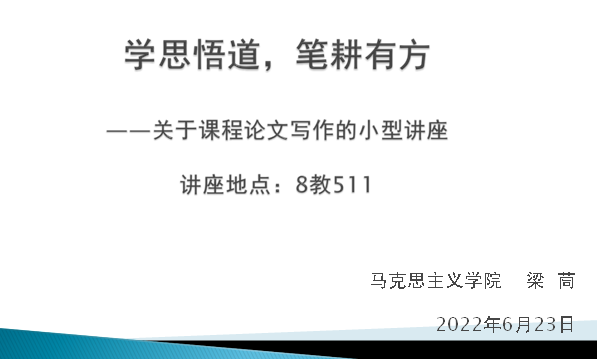 6月23日上午,“学思悟道,笔耕有方”小型讲座在我校四会校区8教511举行,讲座由我院教师梁茼副教授主讲,21级汉语言文学专业部分同学到现场聆听。
