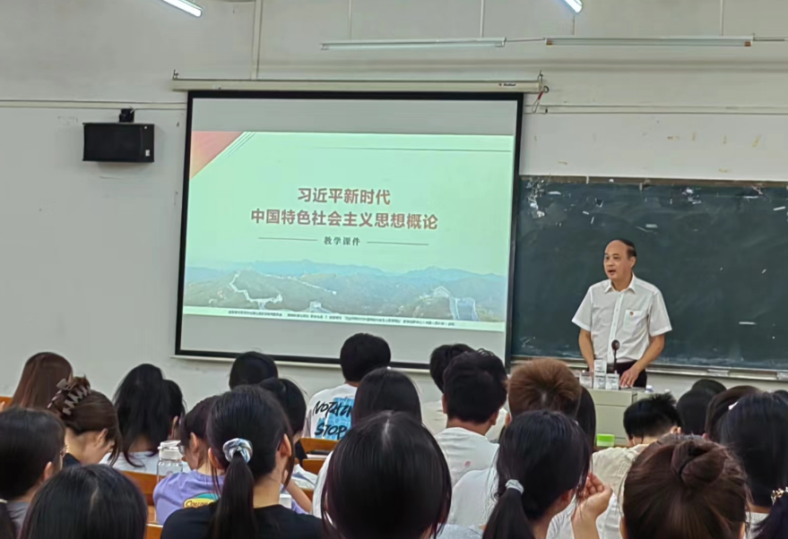 为深入贯彻落实立德树人根本任务,推进习近平新时代中国特色社会主义思想进课堂进头脑,充分发挥思政课培根铸魂的作用,2022年9月28日上午10时校党委书记苏宁于励志楼C301 教室为我校2021级大二学生讲授了一堂内容充实的《习近平新时代中国特色社会主义思想概论》第一讲。
