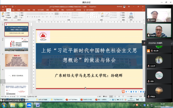 2022年10月15日上午9:00-11:30,威廉官网,williamhill中国官网,英国威廉希尔公司网站成功举办网络讲座:上好“习近平新时代中国特色社会主义思想概论”课的做法和体会。讲座邀请广东财经大学williamhill中国官网副院长孙晓晖教授主讲,williamhill中国官网增城校区和四会校区全体教职工,以及该课任课外聘教师参加了本次线上讲座。