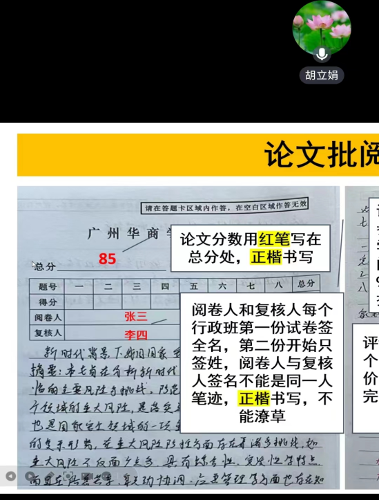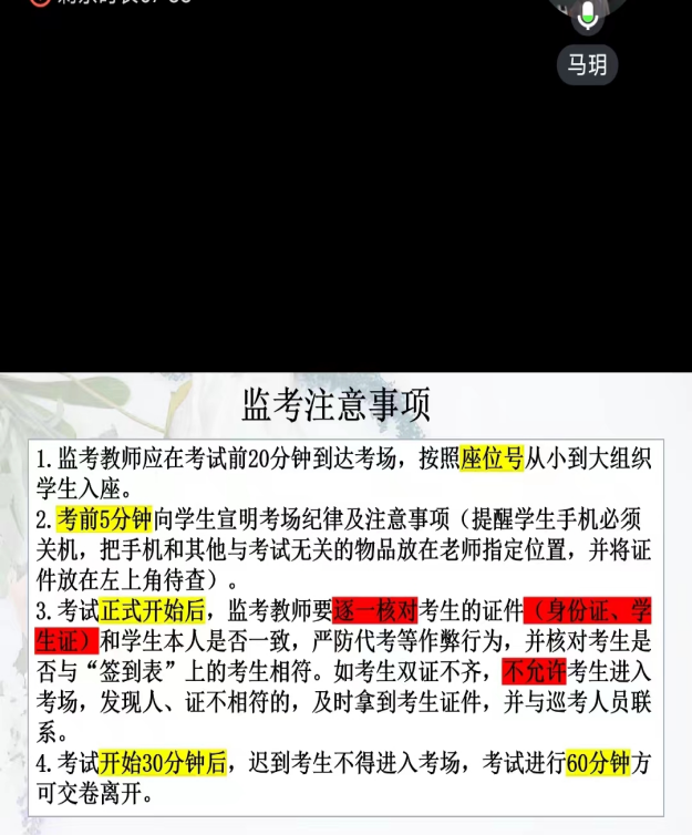首先胡立娟副院长对期末工作作了具体和细致的布置。胡院就各课程的成绩权重、过程性考核、试卷批改、成绩录入等事项作了严格的规范,并对下学期的排课安排作了汇报。教学秘书马玥老师对全体教师作了期末监考的专题培训。她向与会教师详细讲解了监考工作的具体注意事项。