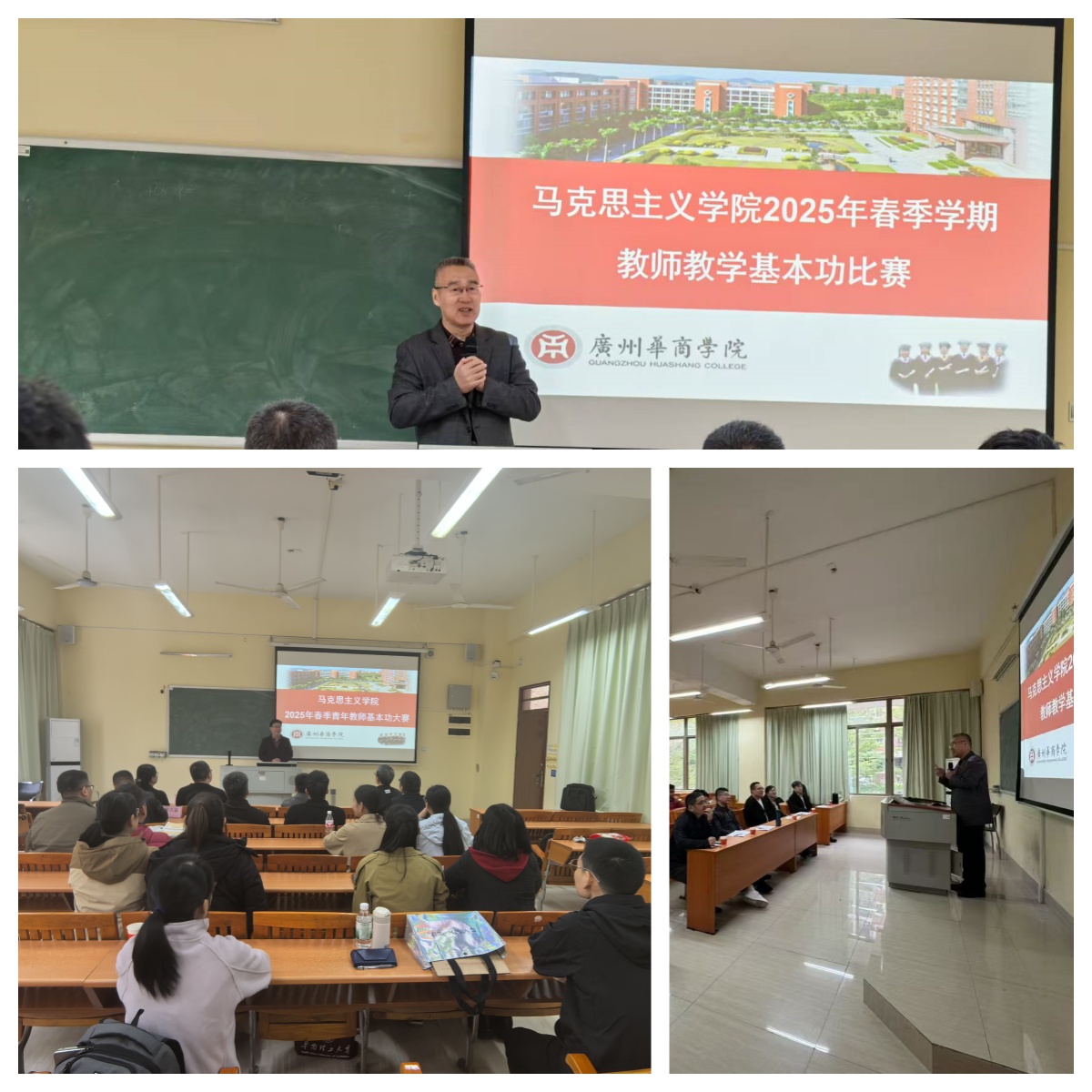 2025年3月30日,williamhill中国官网在启智楼201成功举行了教师教学基本功比赛。本次比赛旨在提高教师思政课程教学水平,促进教师专业成长,共有23名选手参赛。来自暨南大学、广东财经大学、广东金融学院和仲恺农业工程学院的7位专家受邀担任评委,williamhill中国官网院长杨明教授亲临现场致辞,院长助理邹宁军老师担任本次比赛的主持人。