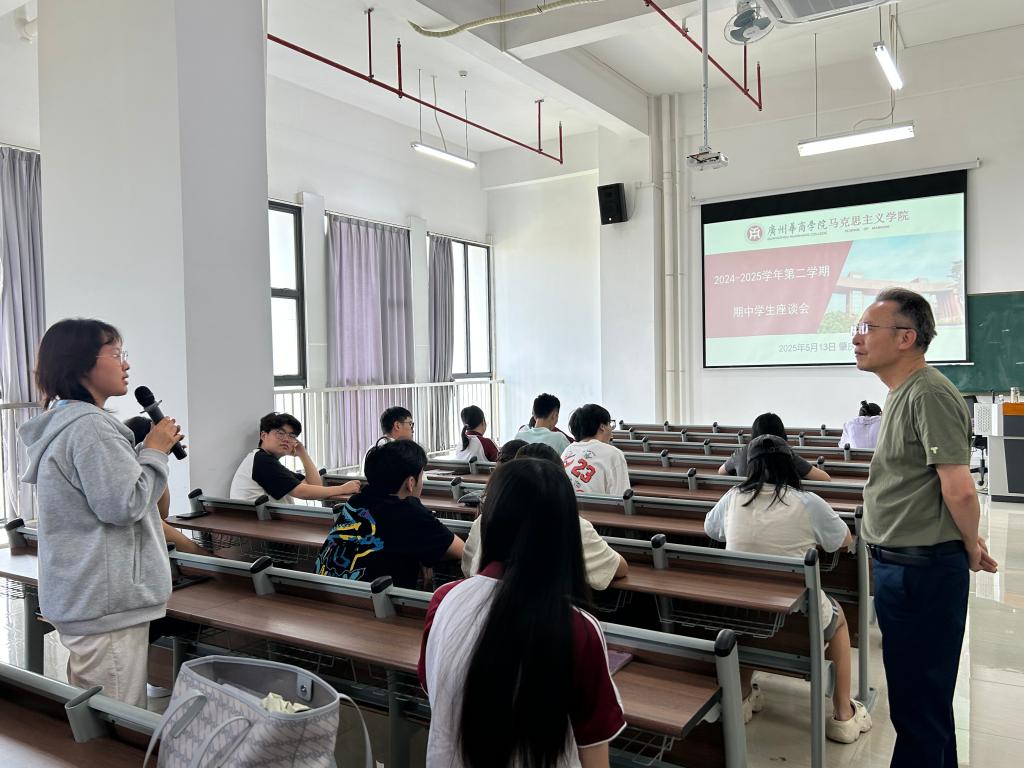 为进一步倾听学生学习思政课的心声,了解学生对思政课教学工作的意见与建议,切实提升思政课的育人实效,williamhill中国官网于2025年5月13日下午在肇庆校区6号楼301教室召开了学生期中座谈会。会议围绕思政课的教学安排、授课方式及实践教学内容设计等方面展开交流,广泛听取学生的反馈与建议。