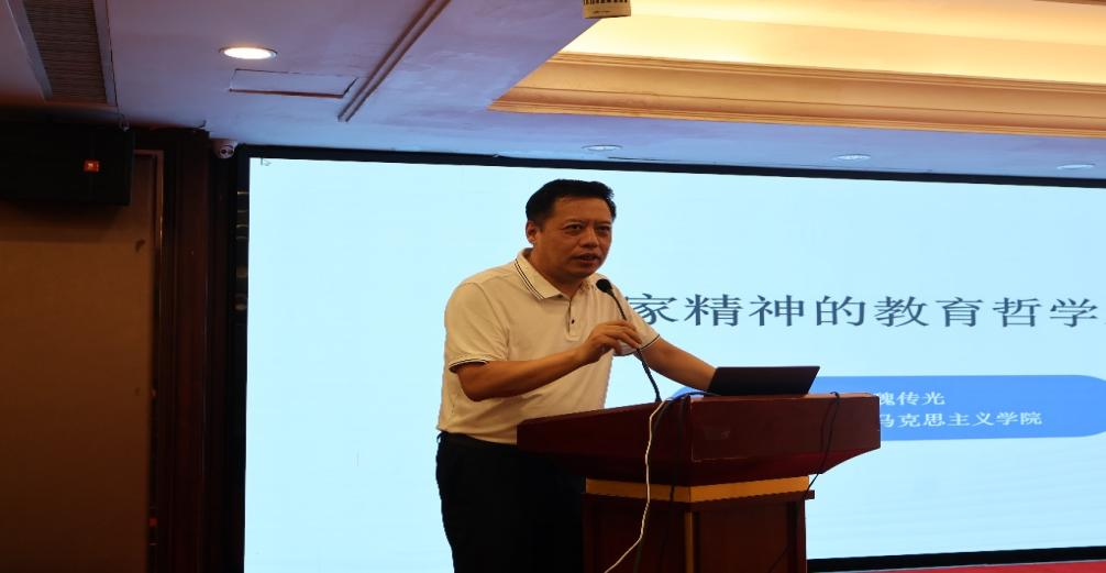 7月7日,南京师范大学马克思主义学科集群(学部)部长王永贵教授作了题为“善用看家本领讲好思政课的道理”的精彩报告。王教授强调思政课教师要重视并掌握“看家本领”,提升教学方式和方法,以解决好学术研究的“专”与教学内容的“广”、理论素养的“低”与课程要求的“高”、知识接受的“慢”与内容更新的“快”之间的矛盾。暨南大学williamhill中国官网院长魏传光教授从“四有好老师”到“教育家精神”的脉络梳理出发,深入探讨了教育家精神的教育哲学内涵,并阐述了弘扬教育家精神的实践路径。