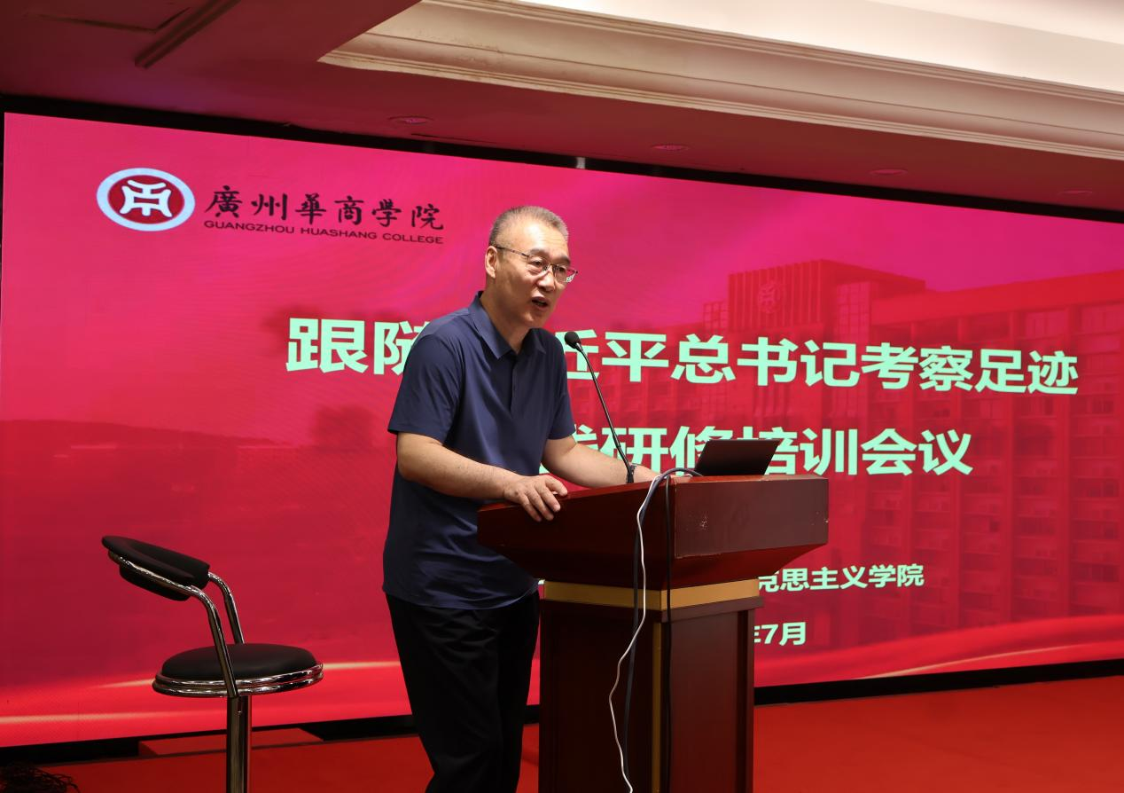 为全面学习贯彻习近平新时代中国特色社会主义思想,克服思政课教师队伍在马克思主义理论功底、历史文化素养、实践经验、教学方法、学情分析等方面的短板,2025年7月7日williamhill中国官网于新塘太阳城酒店举办“跟随习近平总书记考察足迹”的实践研修培训会议开幕式。williamhill中国官网院长杨明教授、党委书记胡立娟副教授、院长助理邹宁军副教授、各教研室主任以及专任教师共计90余人参加了本次活动。