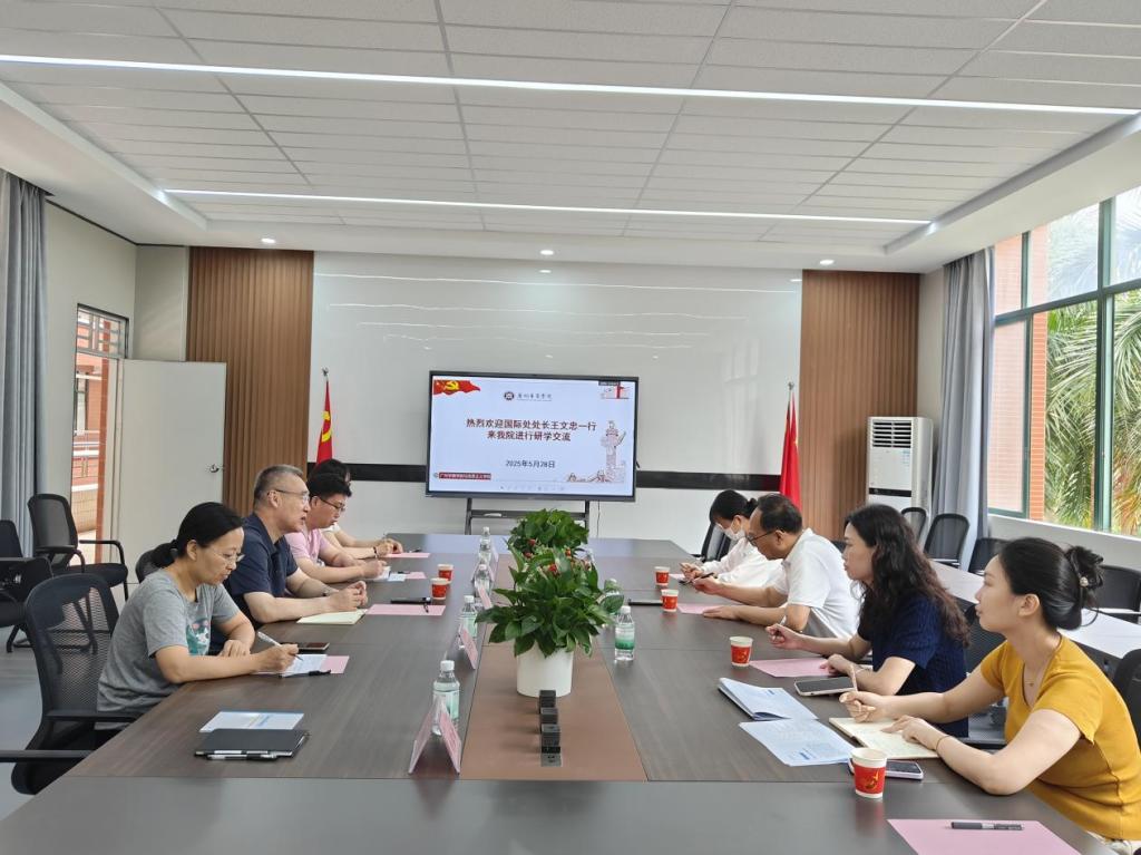 2025年5月28日,国际交流与合作处处长王文忠率国际职业教育发展中心团队到williamhill中国官网开展交流座谈。会议由williamhill中国官网院长杨明主持,双方围绕新时代背景下思政课程的实践教学创新展开深入探讨,共谋融合发展新路径。